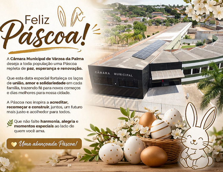 A Câmara Municipal de Várzea da Palma deseja a toda população uma Páscoa repleta de paz, esperança e renovação.